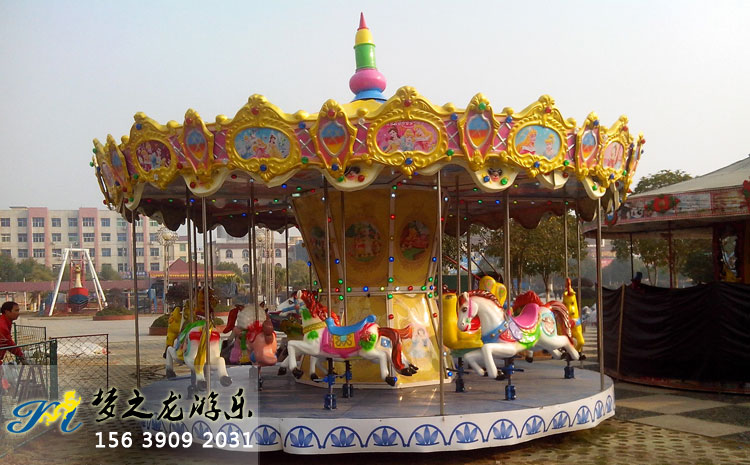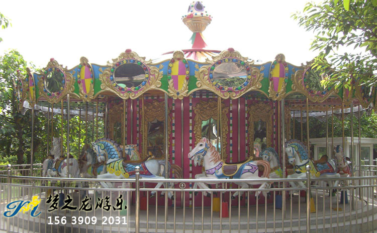 豪華旋轉(zhuǎn)木馬是夢之龍開發(fā)研制的新款游樂設(shè)施。該設(shè)備既能繞垂直主軸旋轉(zhuǎn),又能上下起伏的游樂機(jī)械。屬于下傳動、設(shè)計(jì)新穎、機(jī)構(gòu)獨(dú)特、造型美觀。下面是夢之龍豪華旋轉(zhuǎn)木馬使