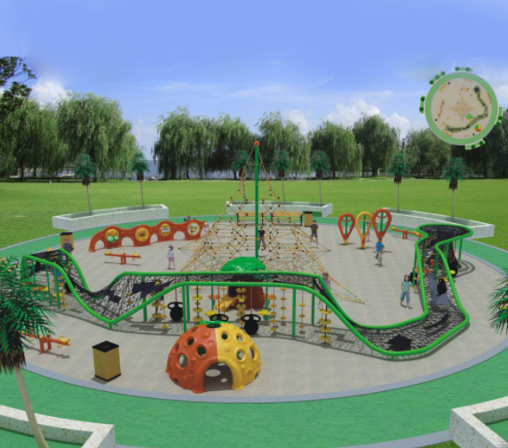 游樂場設(shè)備本身要吸引眼球,要有趣味性,地形設(shè)計高低起伏,配合設(shè)施趣味豐富