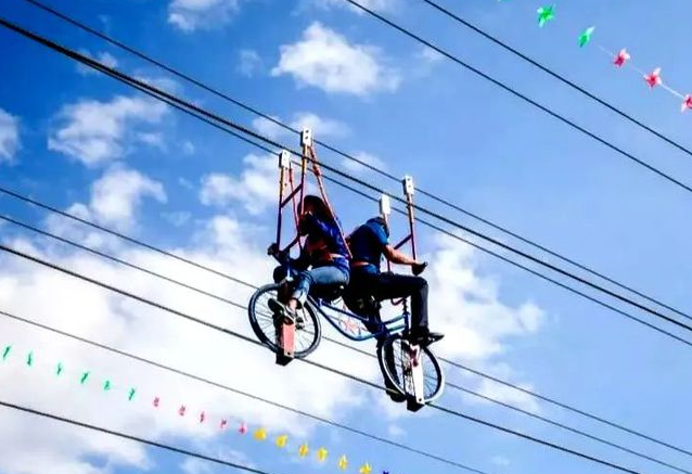 小夢近挖掘到了一個新奇的游樂場設備項目,讓你覺得天空是那樣地觸手可及。你能想象騎著自行車穿越天空嗎?這個游樂場設備項目幫我們實現(xiàn)了穿越天空的夢想,它就是——高空自行車。
